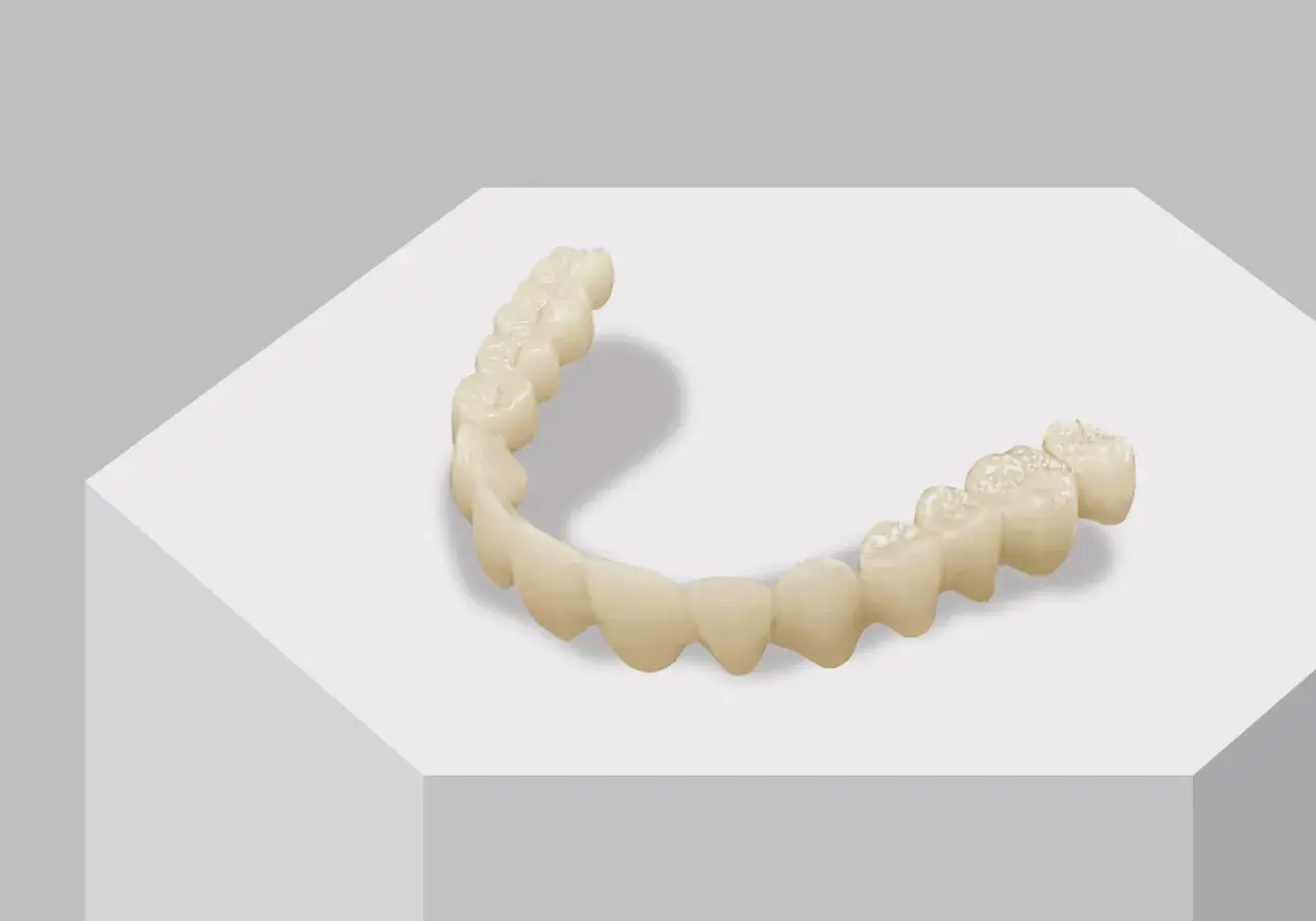 Este es el mejor material para prótesis sobre implantes o prótesis dentales naturales para puentes de seis o más dientes. Su estabilidad física ha sido verificada y ha obtenido las certificaciones MFDS Clase 2 y CE Clase II A.