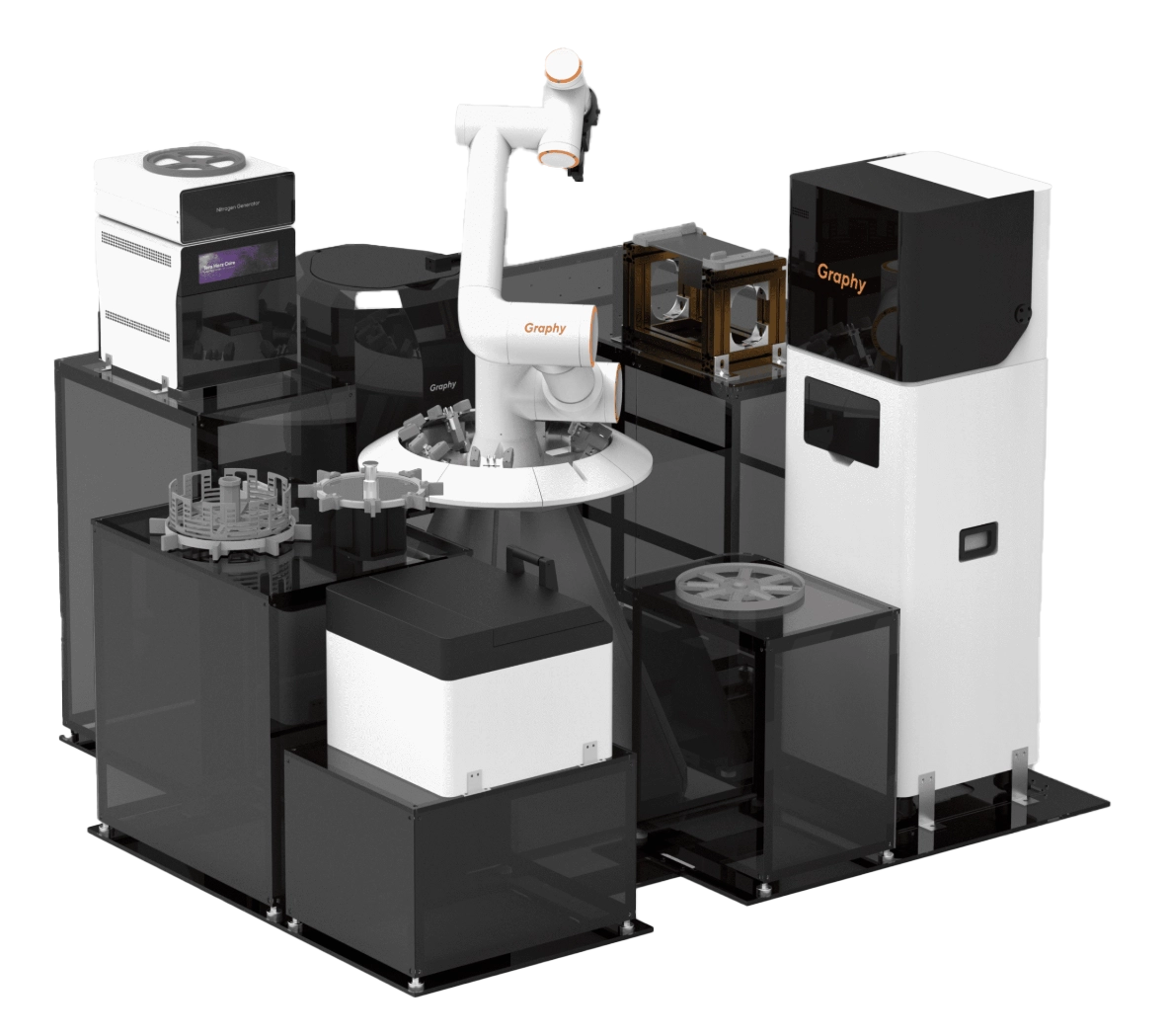 Cuando el robot inteligente Tera Harz (THSR) toma el lápiz y toca la pantalla LCD, comienza la impresión. Una vez finalizada la impresión, se abre la puerta de la impresora.